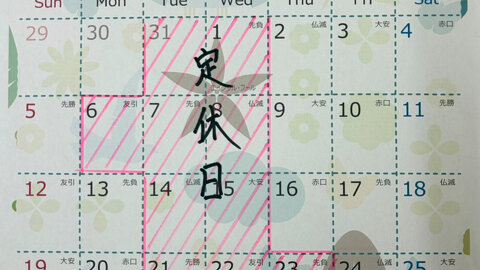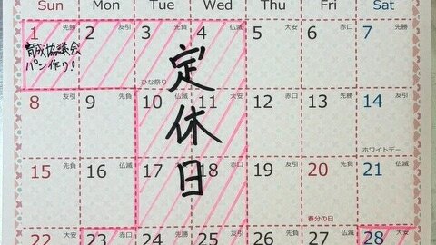 4月定休日のお知らせです。