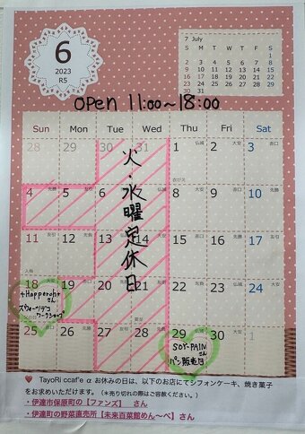 他、6月は誠に勝手ながら2023年6月4日(日)・6月5日(月)・6月19日(月)もお休みとさせていただきます。