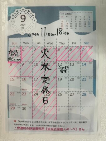 TayoRi cafe α は毎週火・水曜日が定休日 他、
