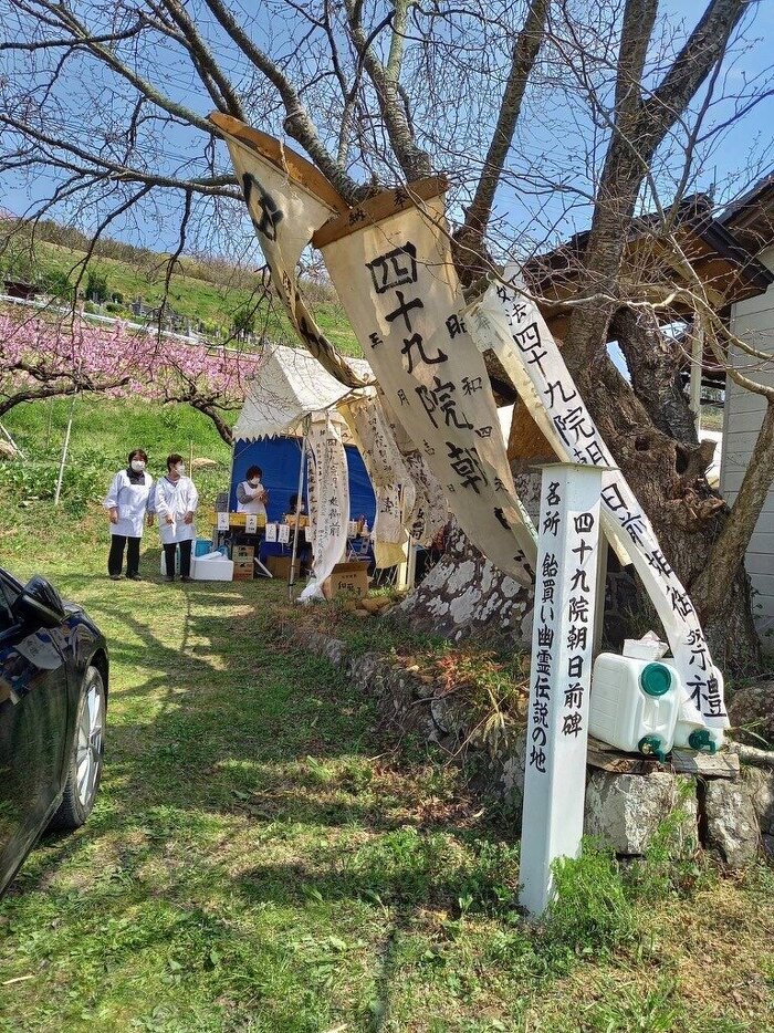 今年は2025年4月11日(日)、飴買い幽霊伝説で有名な伊達市保原町柱田の四十九院(つくもいん)地区にある田元地蔵尊のお祭りで、