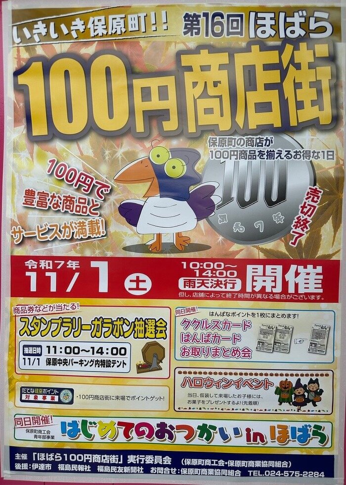 11月1日(土)に開催される『第16回ほばら 100円商店街』