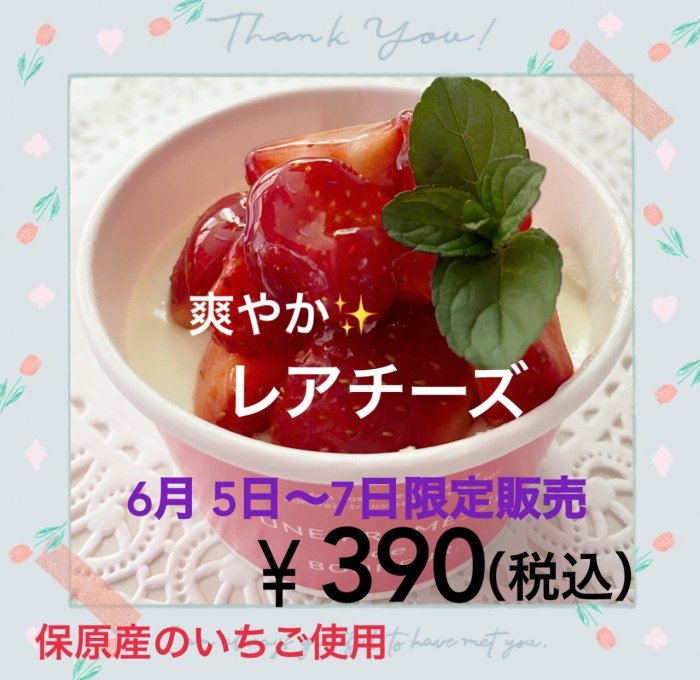 地元 保原産のイチゴを使用した『爽やかイチゴのレアチーズ』をゲリラ販売いたします。