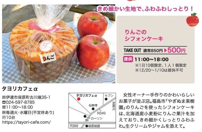 11月25日発売のCJ Monmo 12月に掲載された、福島県北地域のりんごと野菜を使ったパン&スイーツがワンコインで楽しめる趣旨のキャンペーンに賛同し、当店も参加しております。
